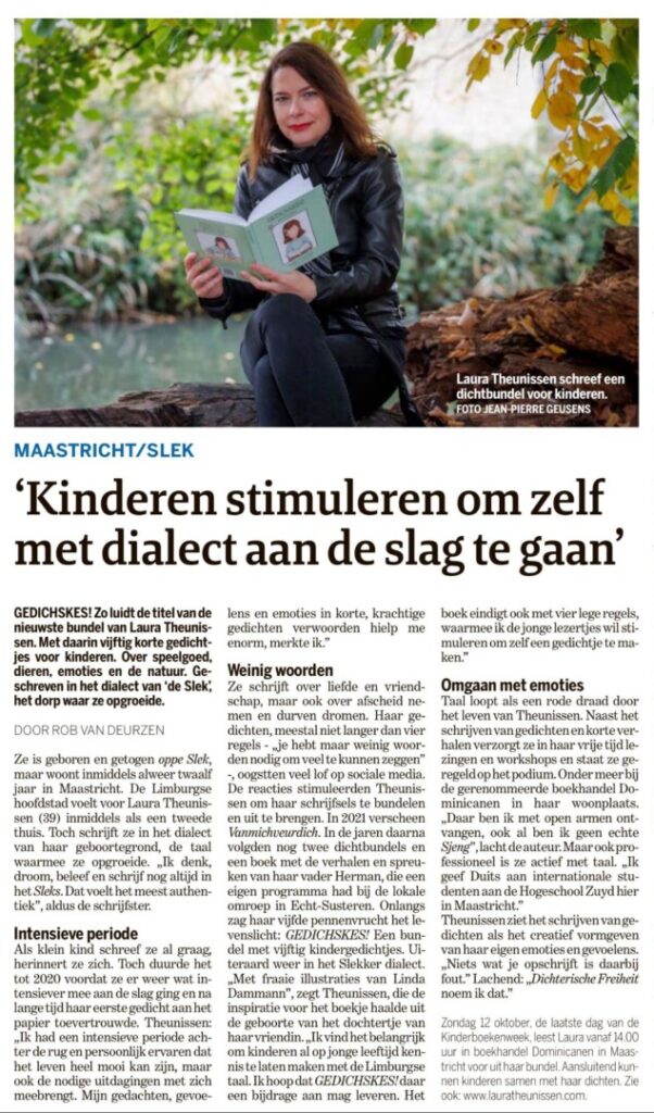 In november 2022 werd Laura geïnterviewd door Maurice van der Linden, dit in het kader van een speciale rubriek in De Limburger, die aandacht geeft aan startende ondernemers. Laura keek terug op de weg die zij tot dan toe had afgelegd en vertelde waarom ze zo geniet van het schrijven en voordragen van haar gedichten. Het artikel leest u via deze link:
